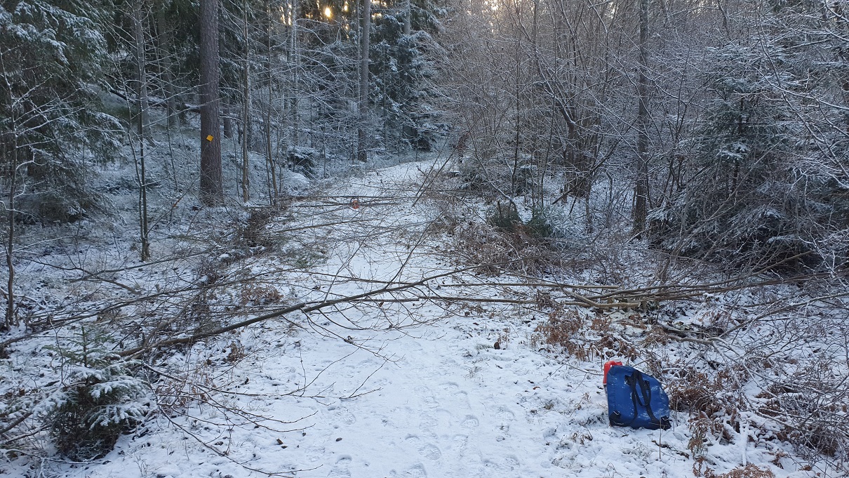 Samling vid förrådet kl 09.00 med genomgång om planerna att röjningen skulle fokusera på 5 km spåret efter första vägen fram till södra vändslingan. Peter informerade om de pågående diskussioner om nytt skötselavtal med kommunen där det bl.a tillkommit önskemål om att allt sly, ris och grenar som slyröjs skall transporteras bort och får inte lämnas i skogen. Trädstammar får lämnas. 3/12 har Peter möte med förvaltaren för att diskutera hur detta kan gå till på enklast möjliga sätt. Flisning är ett alternativ. Per och David inledde med att sätta stakkäppar på åkern med reflexer för att underlätta att hitta rätt över dikesövergångarna i vintermörkret. Övriga tog sig ut till 5 km spåret och påbörjade slyröjningen. Deltagare var Birger Mossberg, Per Nilsson, Erik Martin, Mats Frost, David Berggren och Peter Lindberg. Arbetsdagen avslutades runt kl 14.